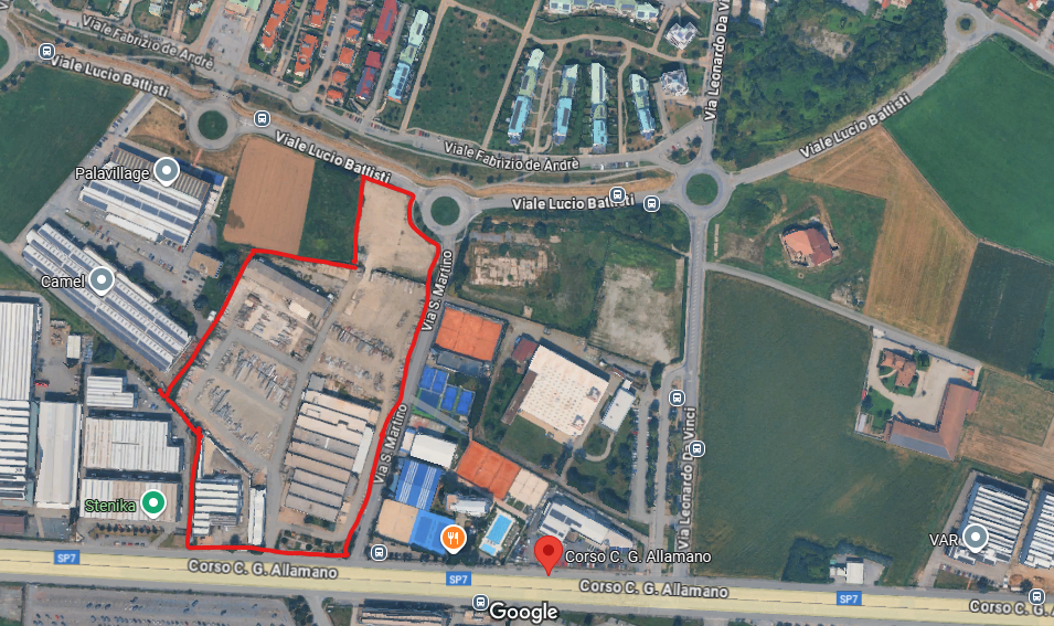 Grugliasco. Fronte C. so Allamano adiacente Centro Sportivo Monviso, terreno industriale/commerciale di mq. 46.000.
